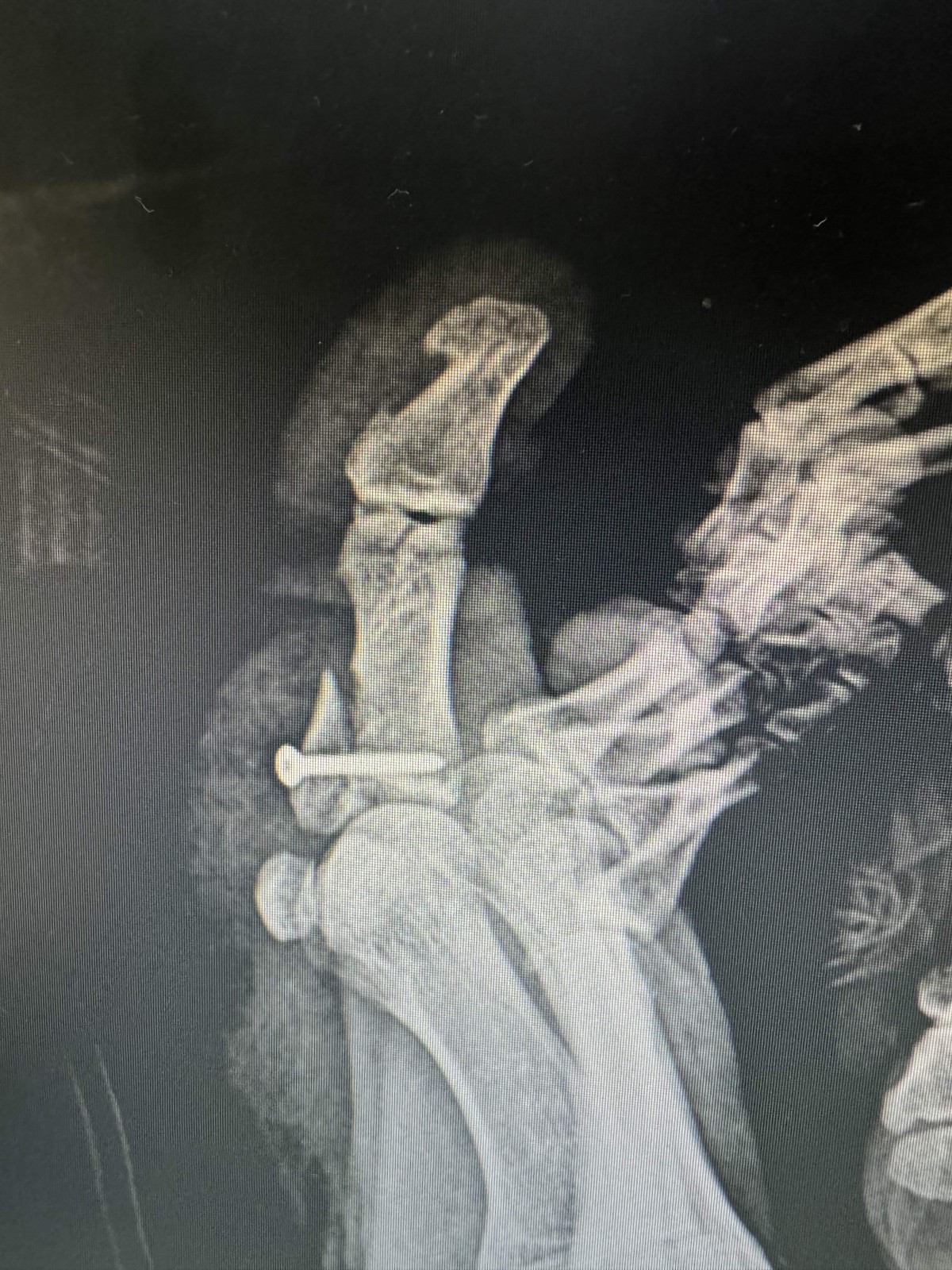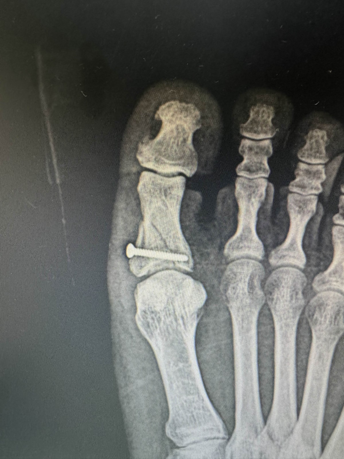 남자 35세, 엄지발가락 골절으로 수술받은 후 2주차 경과 xray입니다.