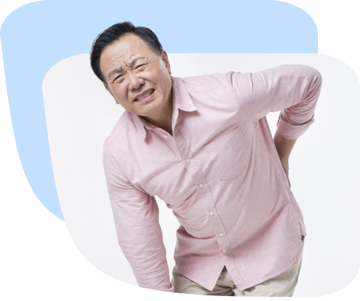 주요 증상은 요통이며 허벅지 뒤쪽 근육의 긴장으로 비정상적인 보행이 나타납니다.